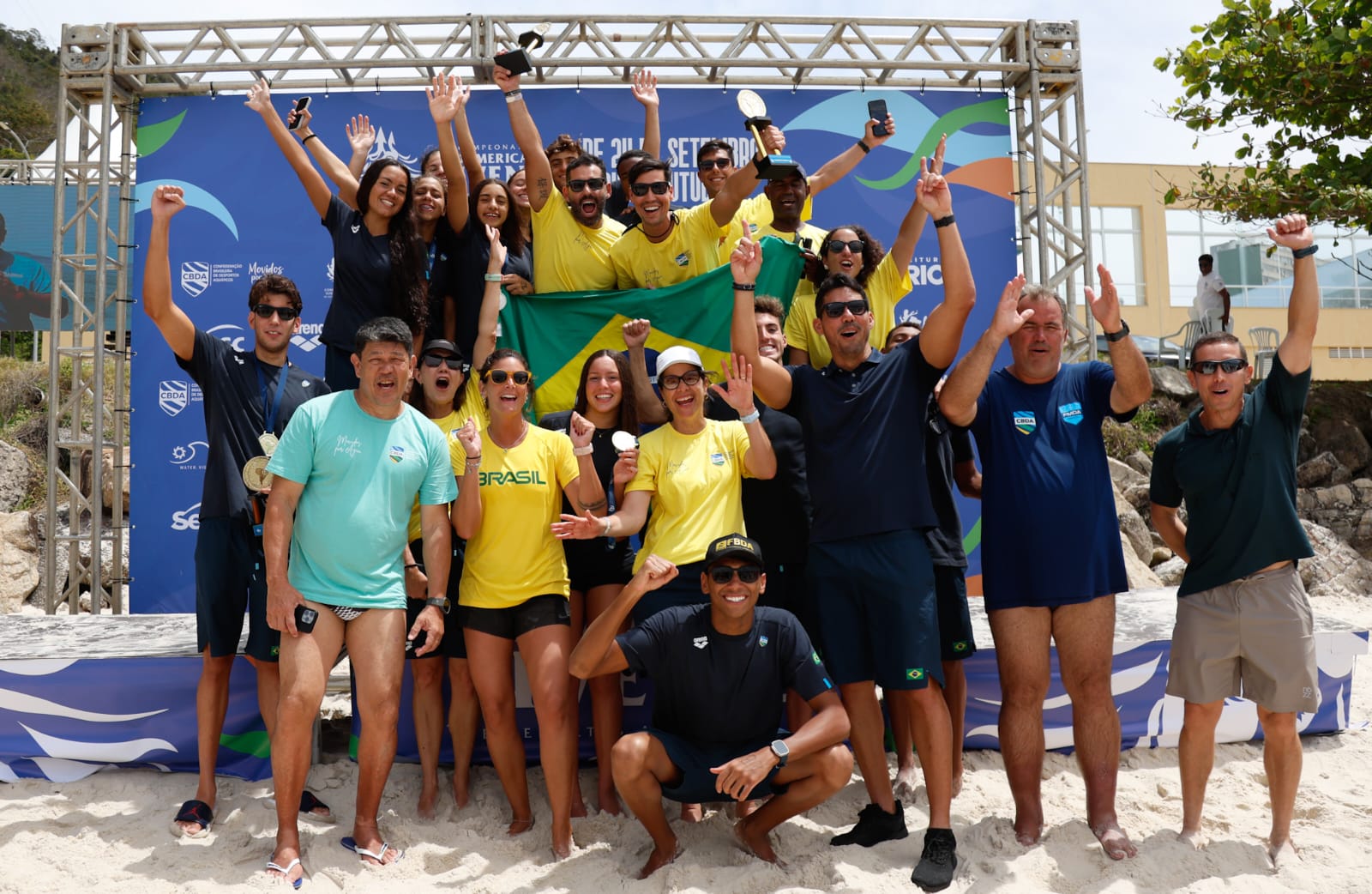 (Rio de Janeiro, 4 de outubro de 2025) O Brasil fechou o Campeonato Sul-Americano Juvenil de Esportes Aquáticos de forma incontestável. No último dia de disputas, a equipe confirmou o título geral em Águas Abertas e Saltos Ornamentais, venceu as finais do Polo Aquático e garantiu a conquista geral em todas as cinco modalidades do evento, coroando uma campanha histórica no Parque Aquático Julio de Lamare e na Praia da Urca.
