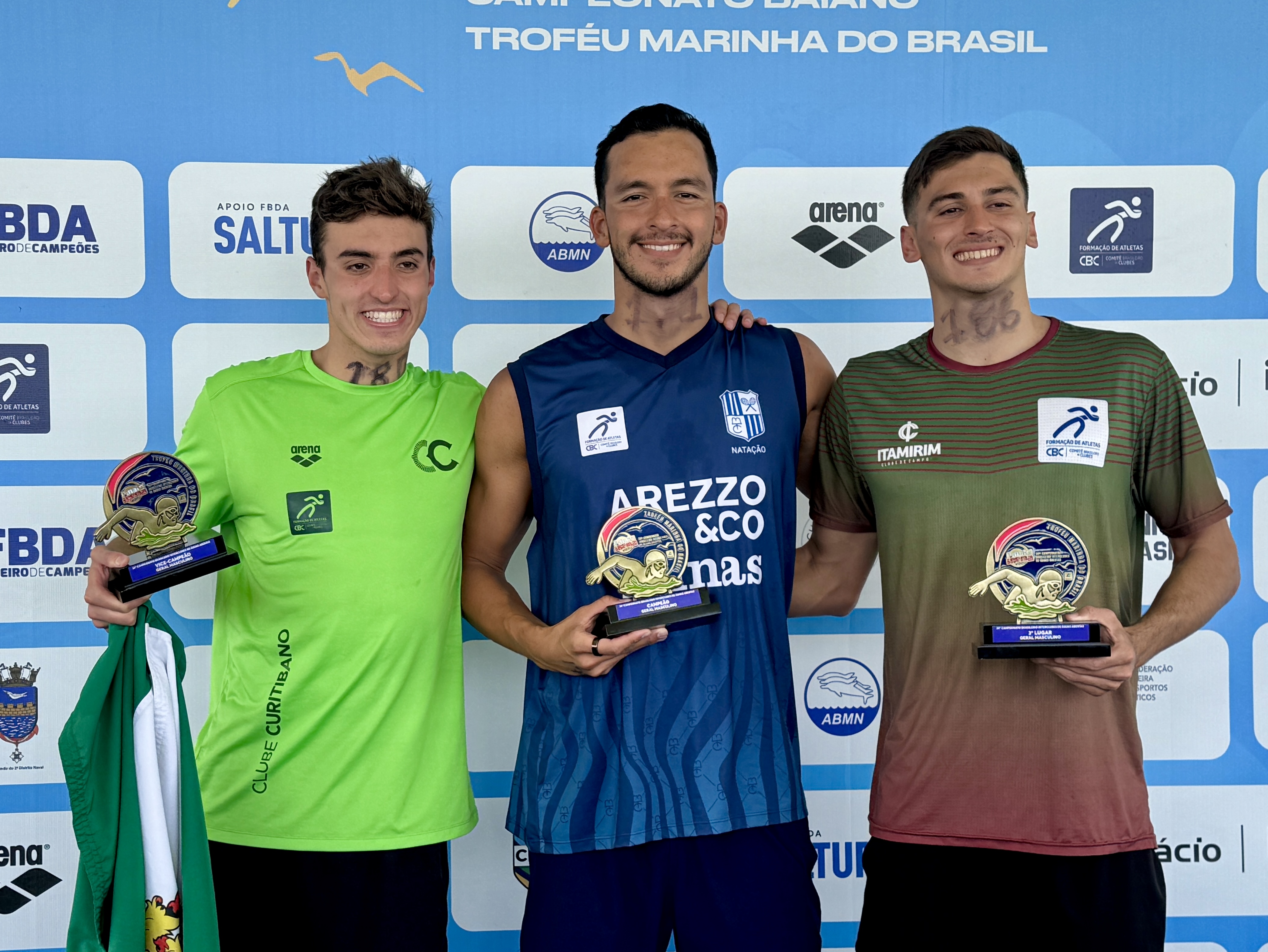 (Salvador, 22 de novembro de 2025) Candela Giordanino e Juan Manuel Morales Restrepo foram os vencedores das provas de 5 km, realizadas neste sábado (22), na etapa de Inema do Campeonato Brasileiro de Águas Abertas, disputada na Base Naval de Aratu, em Salvador, na Bahia. A competição segue neste domingo com novas distâncias para todas as categorias.