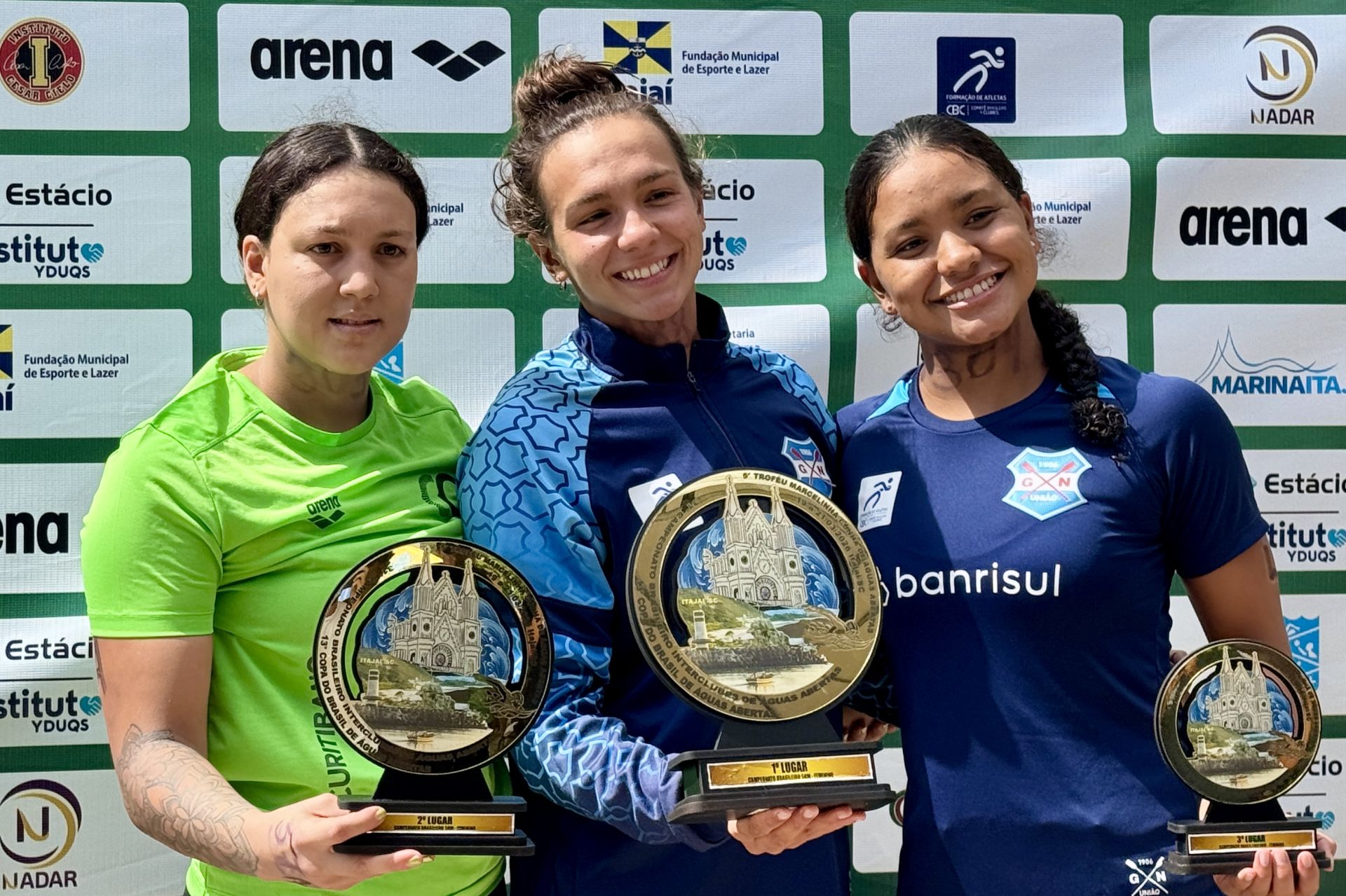 (Itajaí, 21 de março de 2026) Julia Pereira e Victor Moreno foram os campeões da prova de 5 km do Campeonato Brasileiro Interclubes de Águas Abertas – Copa Brasil – Troféu Marcelinha Cunha 2026, disputada neste sábado (21), em Itajaí.